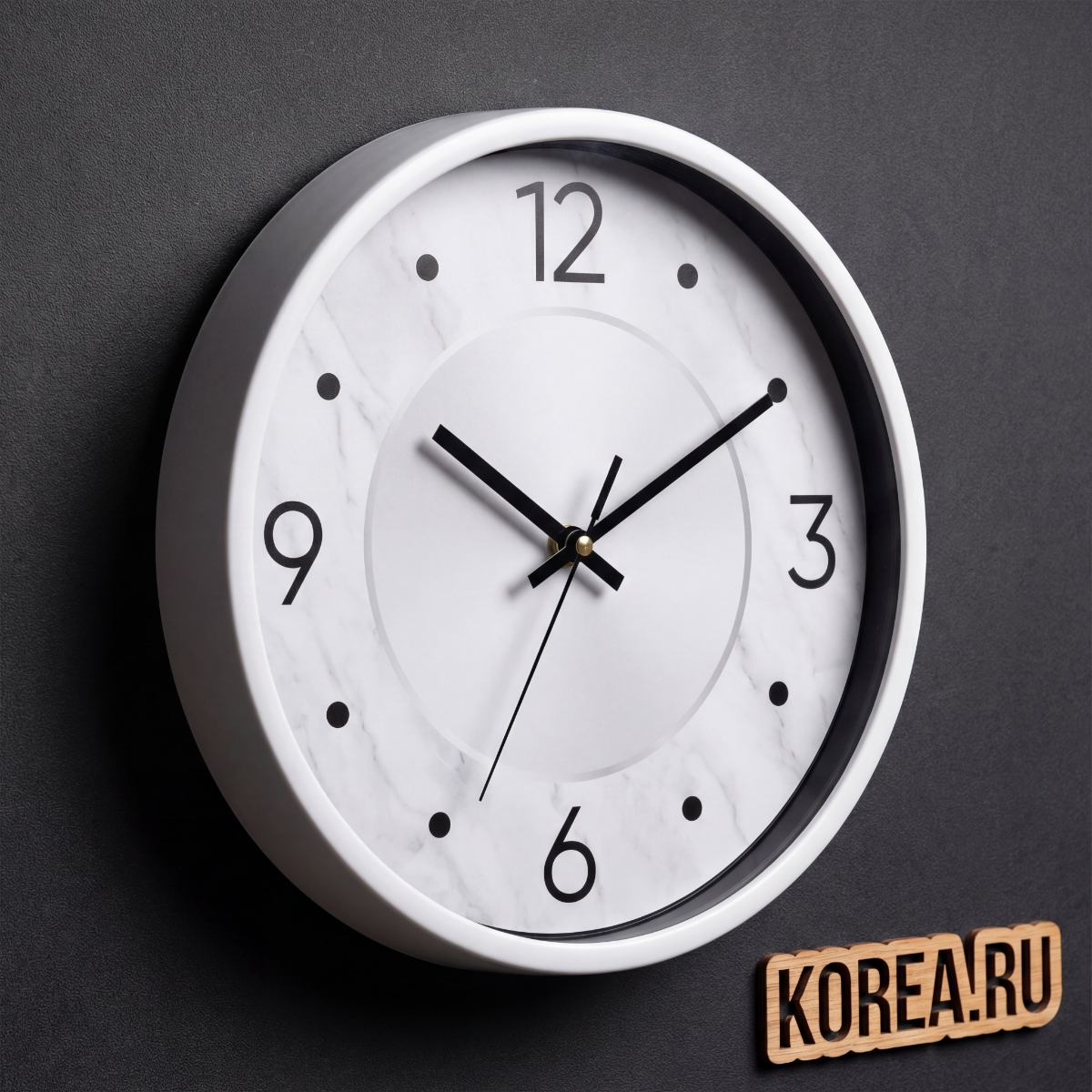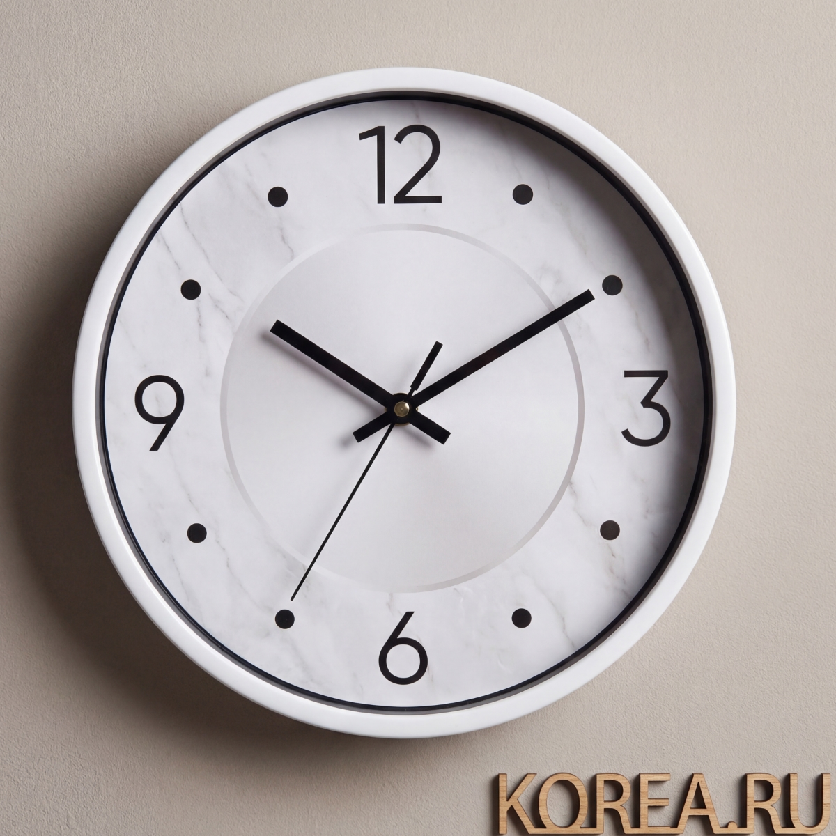 Дизайн часов отличается минималистичным подходом с четкими контрастными стрелками и четко обозначенными цифровыми маркерами. Белый цвет корпуса создает эффект легкости и пространства, делая его универсальным выбором для современных интерьеров.