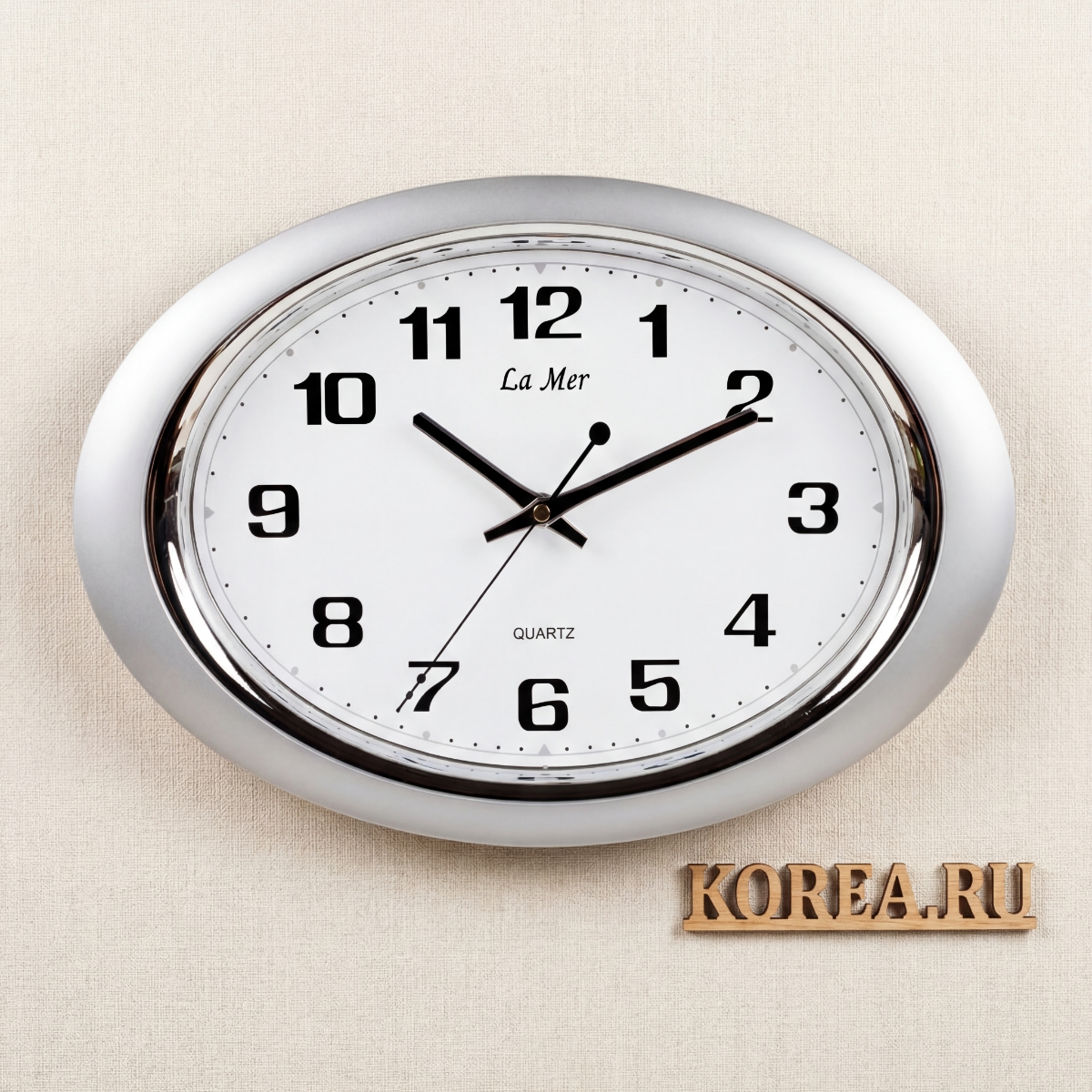 Настенные часы La Mer GD121-2 овальные серебристые 400х260 мм с плавным ходом