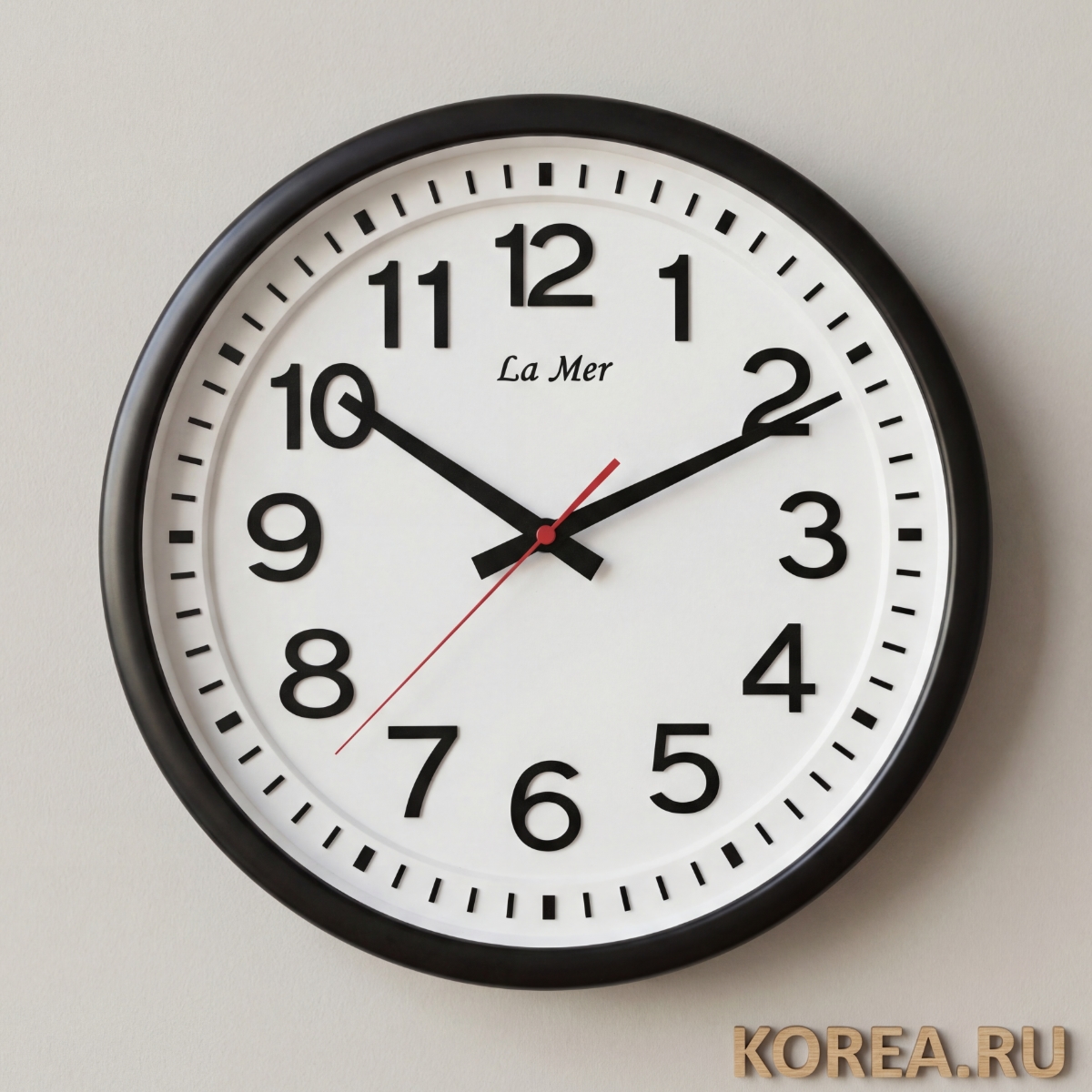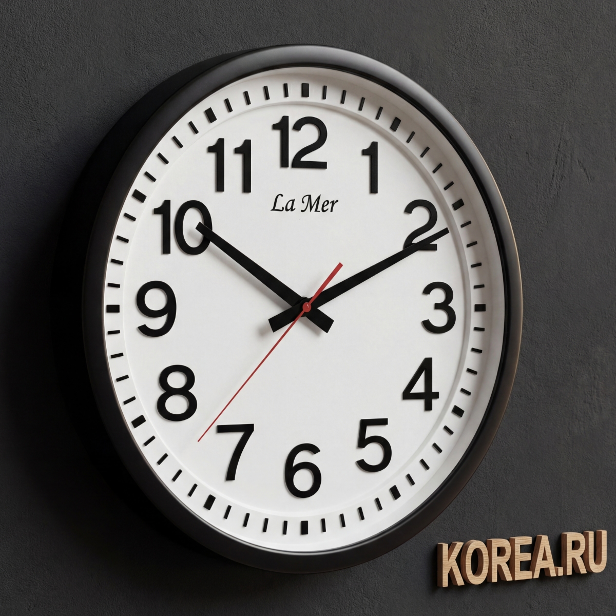 - Оптимальный размер — 340 мм достаточно, чтобы часы были видны со всех концов офиса, но не громоздко