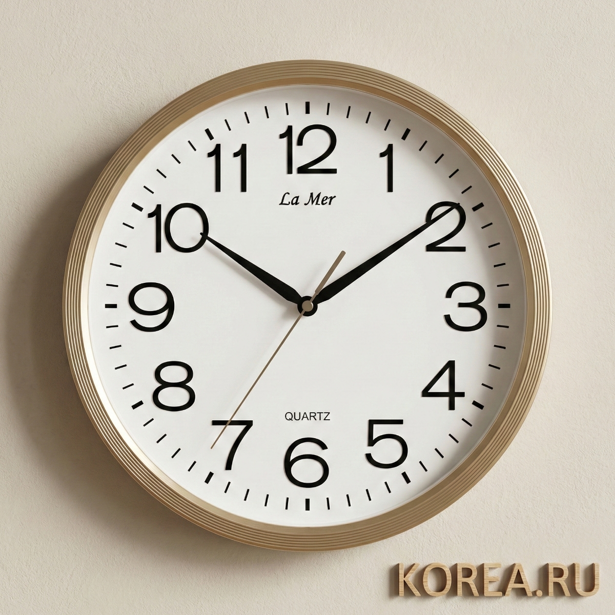 Дизайн циферблата: Классический белый циферблат с четкими черными арабскими цифрами и стрелками обеспечивает максимальную читаемость. Минималистичный подход в оформлении делает часы универсальными для различных интерьерных решений.