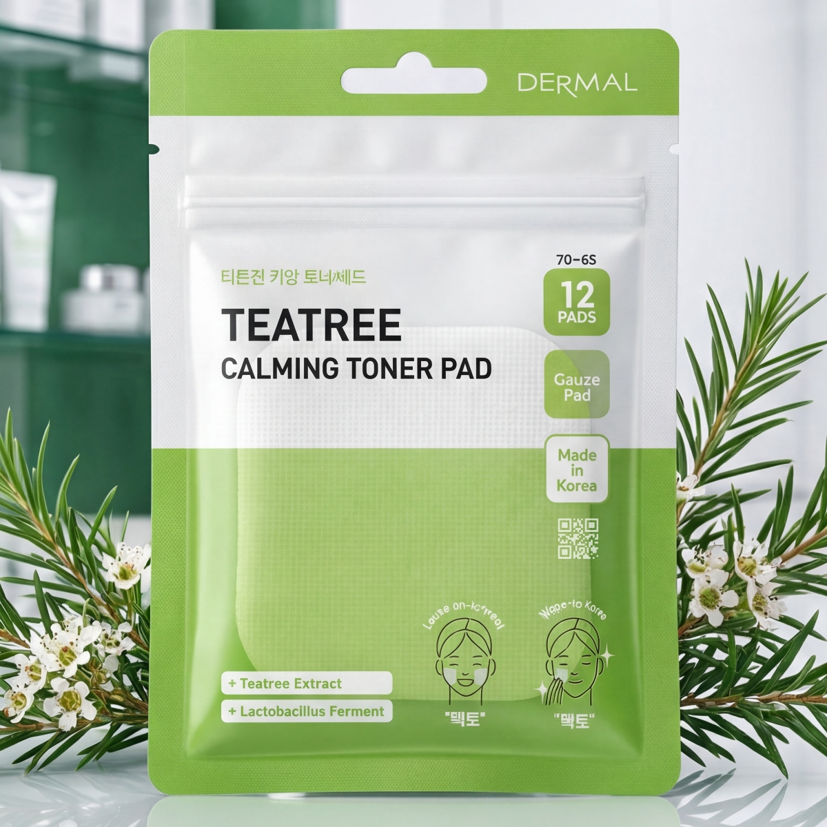 Успокаивающие пэды DERMAL с экстрактом чайного дерева: защита и восстановление для чувствительной кожи (12 шт.)