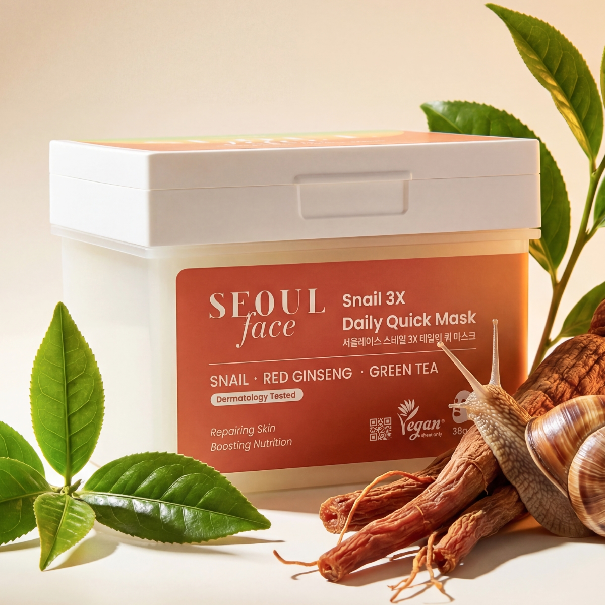 Набор восстанавливающих тканевых масок DERMAL Seoul с муцином улитки, красным женьшенем и зеленым чаем (36 шт) — глубокая регенерация и лифтинг