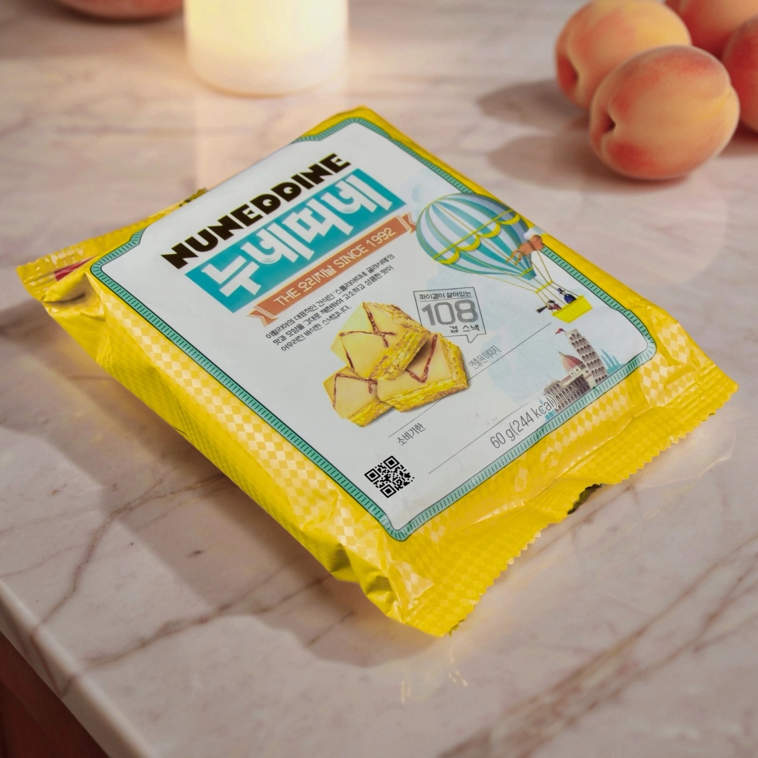Samlip Nuneddine — это изысканное хрустящее печенье из слоеного теста премиум-класса от корейского бренда Samlip, которое покорит вас своим неповторимым вкусом в итальянском стиле «Sfogliatine Glassate». Каждое печенье представляет собой идеальное сочетание нежного слоеного теста, воздушной меренги и ароматного абрикосового сирапа.