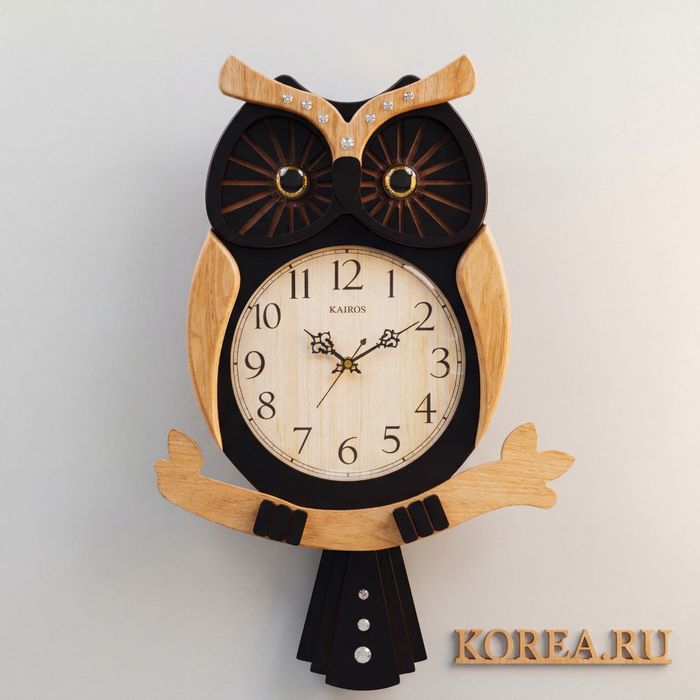 Настенные часы с маятником KAIROS KА-018 в виде совы размер 540x355 мм