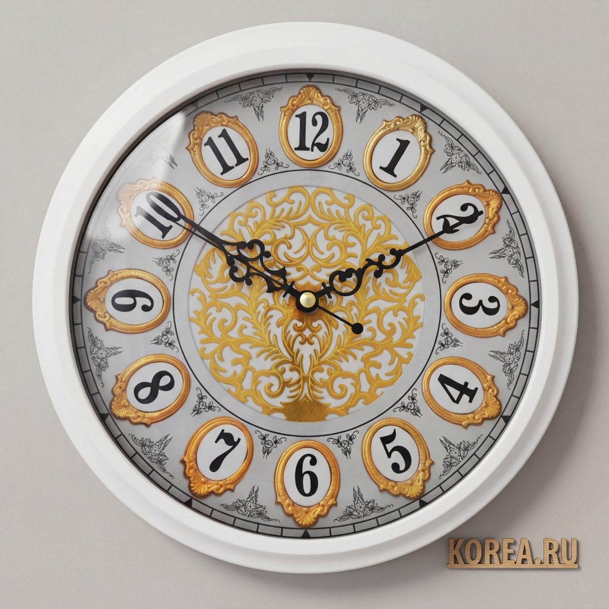 Классический интерьер: Белый корпус с золотистыми декоративными элементами идеально соответствует принципам классического дизайна. Часы становятся элегантным дополнением к мебели в традиционном стиле, создавая атмосферу уверенности и стабильности.