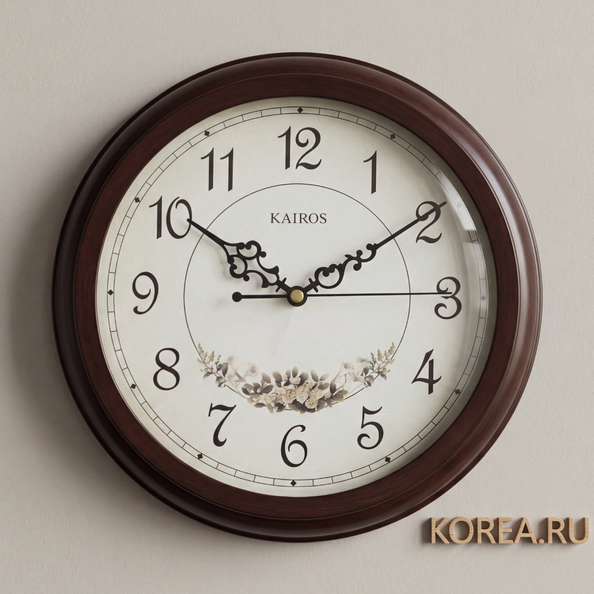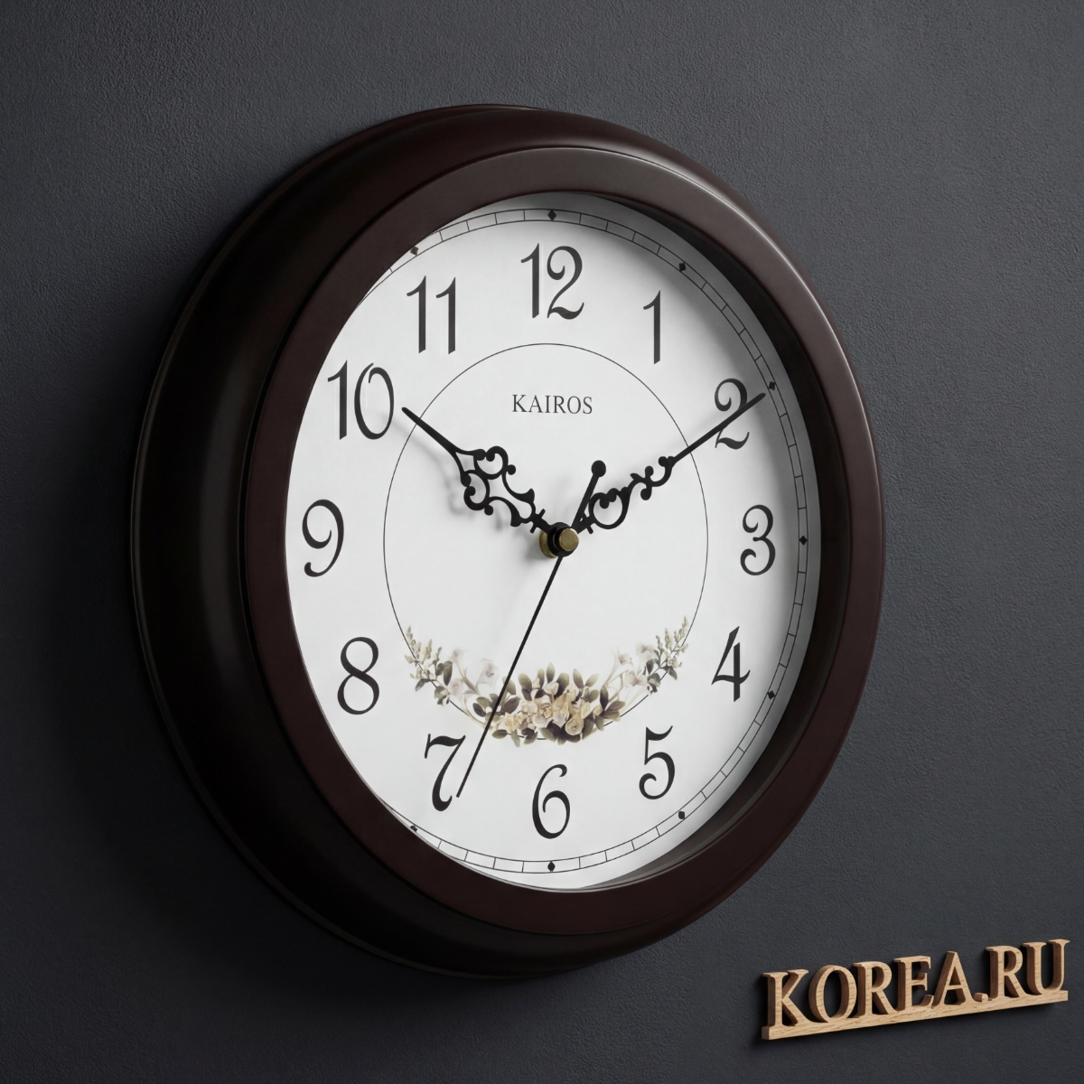 Размер часов составляет 300×300×40 мм, что делает их достаточно заметным элементом на стене, но не громоздким. Круглая форма циферблата подчеркивает классическую эстетику и прекрасно впишется в любой интерьер.