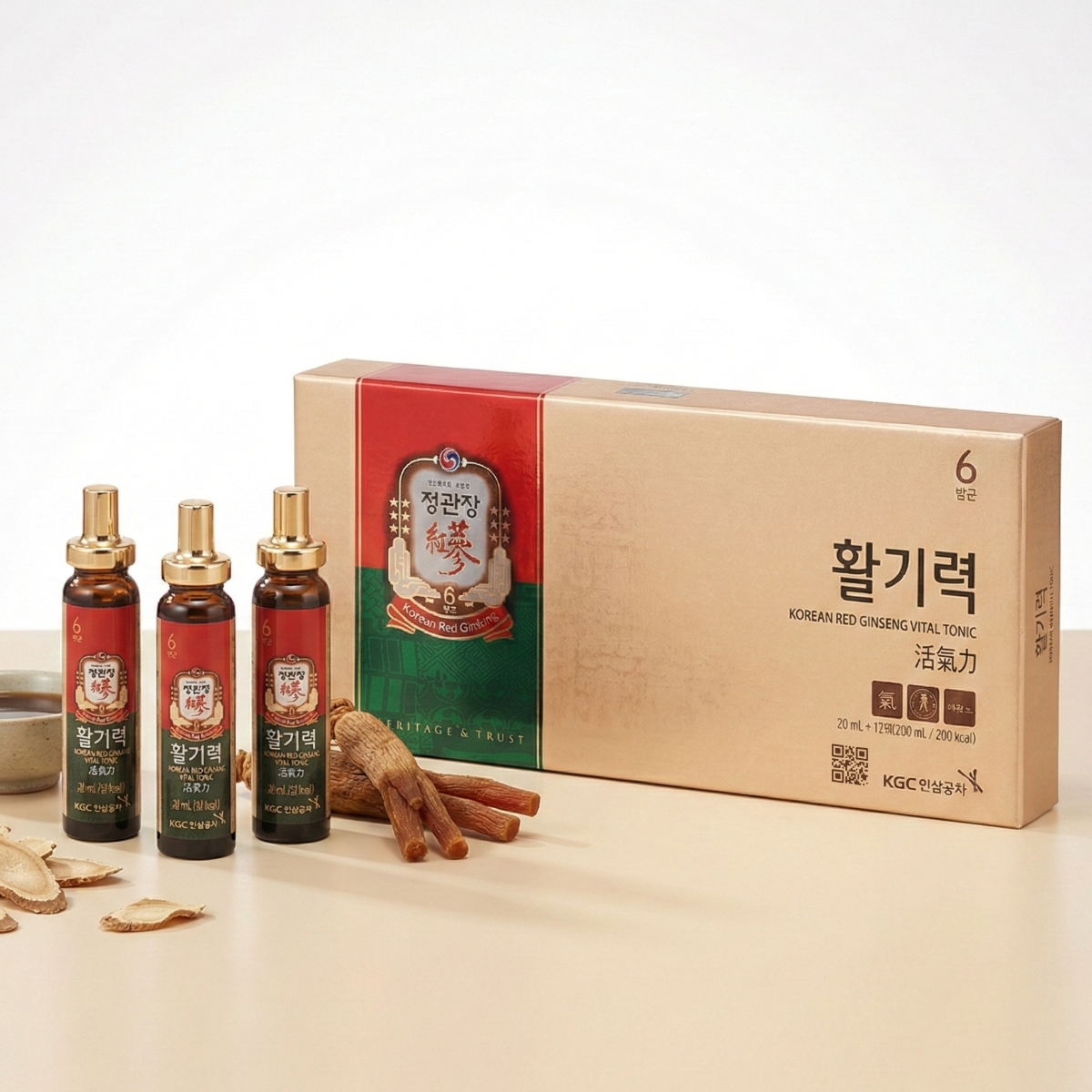 Korea Ginseng Corporation (KGC) Hwal‑Gi‑Ruk — это тонизирующий напиток без кофеина на основе экстракта 6‑летнего корня корейского красного женьшеня с добавлением китайского финика, ягод и имбиря. Формат мини‑бутылочек удобен для ежедневного ритуала: одну порцию легко взять с собой в офис, в дорогу или на тренировку. Напиток создан для тех, кому важно мягко поддерживать бодрость и работоспособность без «кофейных качелей», при этом продукт не является лекарством.