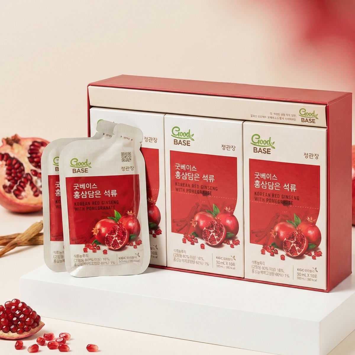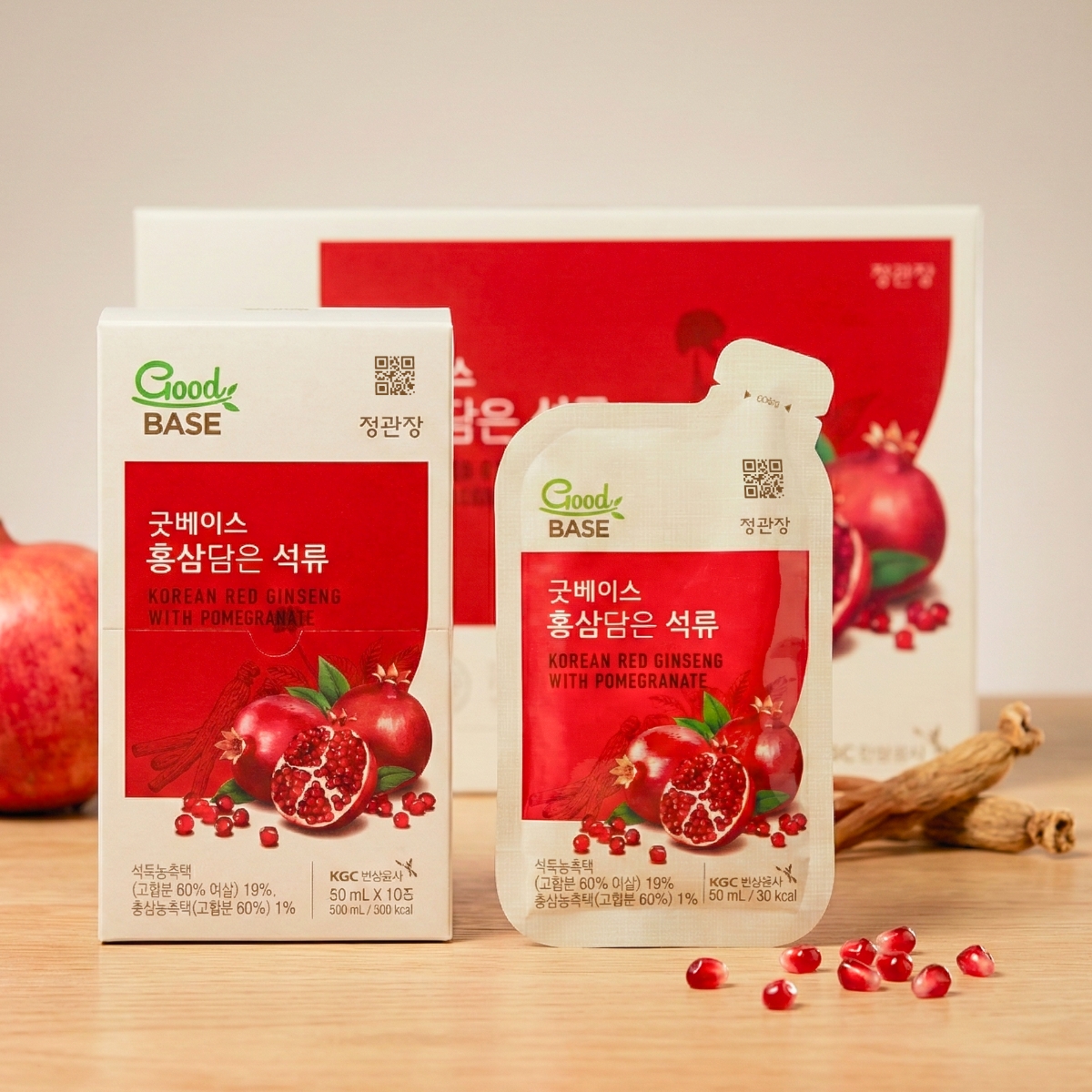 Гранат ценится как один из самых богатых природных источников полифенолов, антоцианов и витаминов C, B1, B2. Экстракт 6‑летнего красного корейского женьшеня от Korea Ginseng Corporation проходит строгий многоступенчатый контроль качества — каждая партия сырья подвергается более чем 290 проверкам на безопасность и чистоту. Марка CheongKwanJang, основанная в 1899 году, является флагманским брендом KGC и остаётся эталоном качества в сегменте женьшеневой продукции.