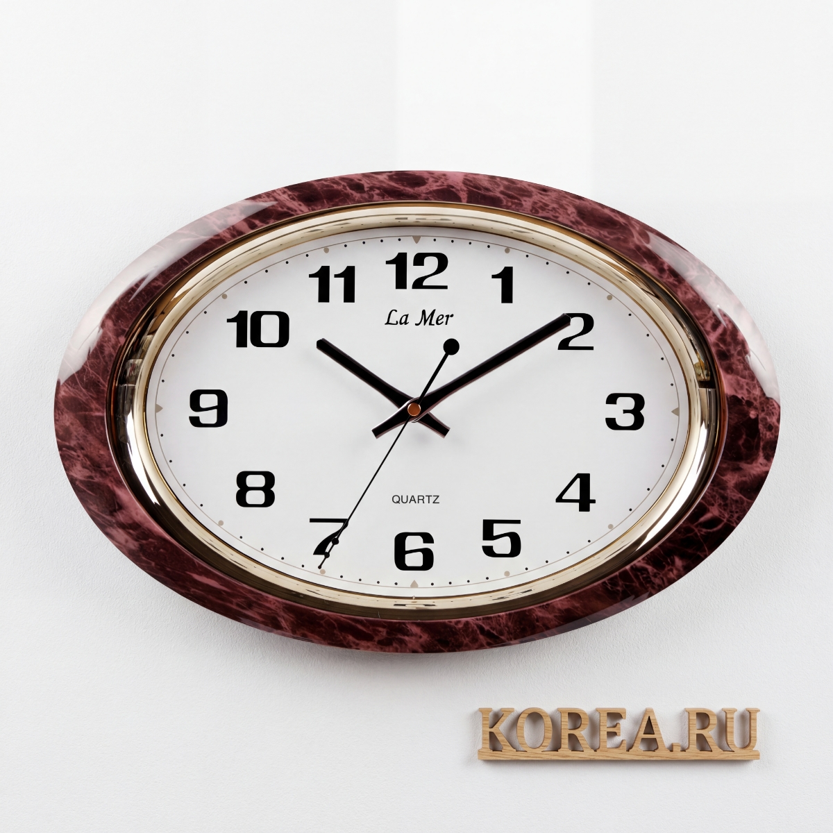 Настенные часы La Mer GD121-14 — это элегантный и функциональный элемент декора, который гармонично впишется в интерьер любого помещения. Изделие выполнено из практичного пластика высокого качества в благородном коричневом цвете с текстурой под мрамор, что придаёт ему внешний вид премиум-класса.