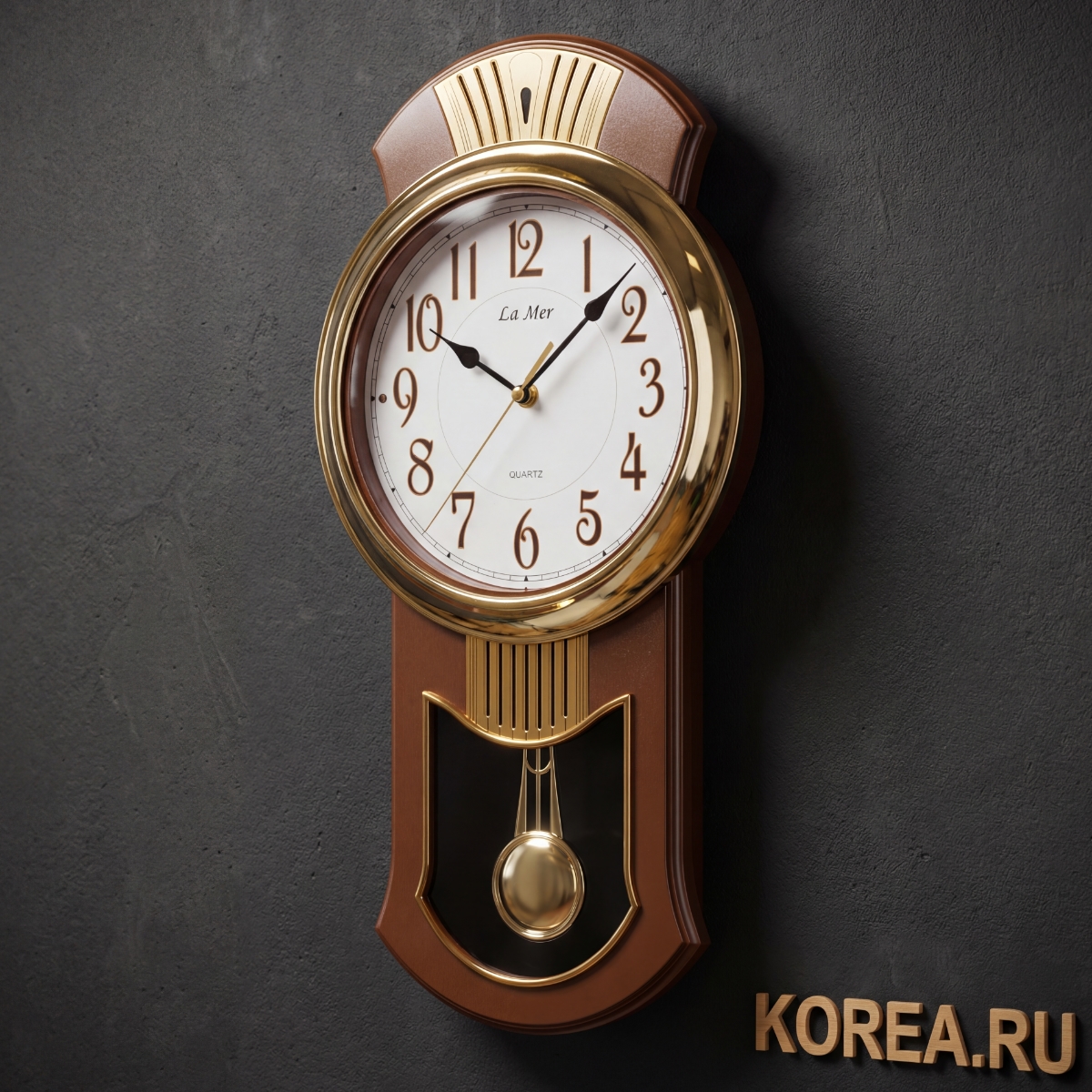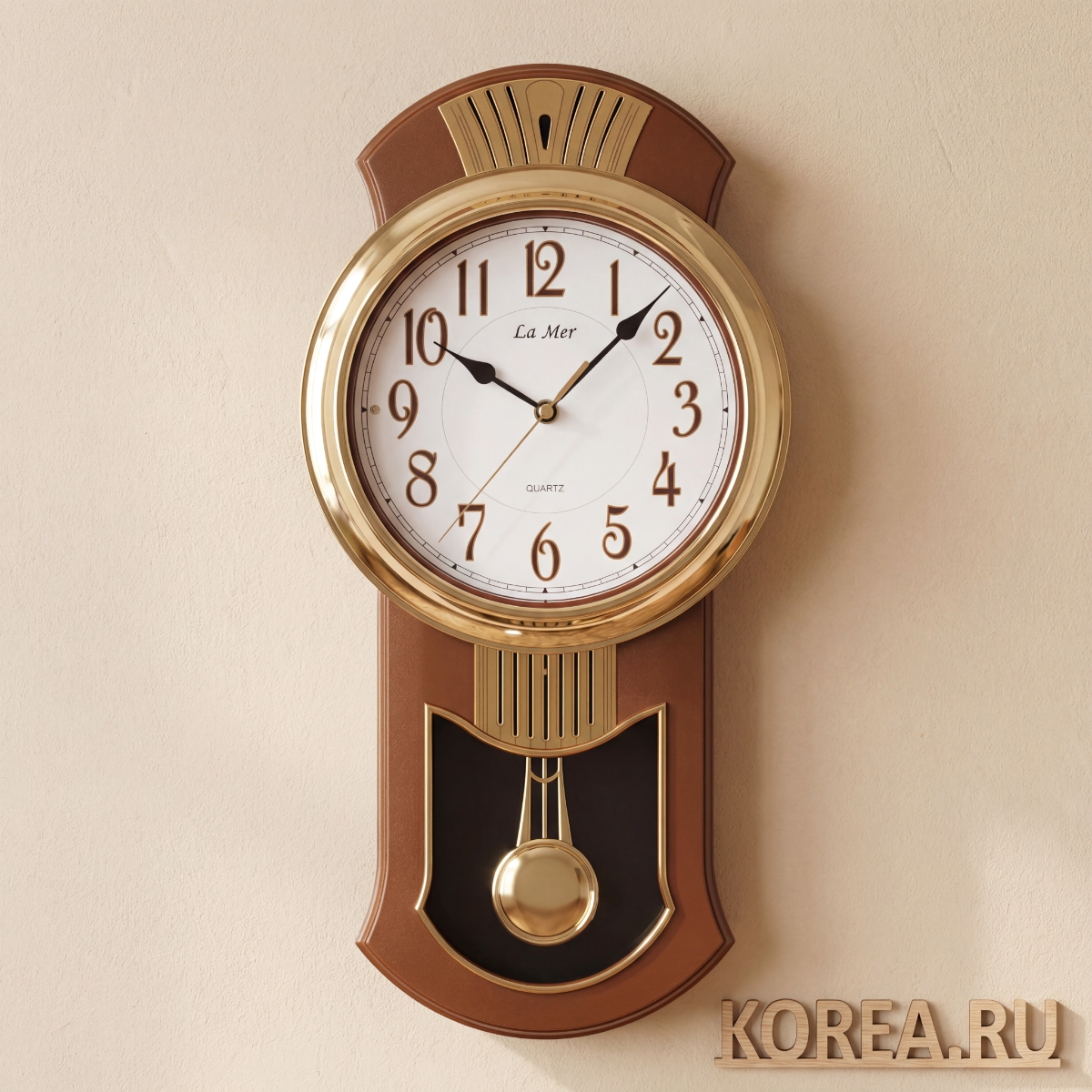 Настенные часы La Mer GE039003 с маятником коричневые 500x260 мм в классическом стиле
