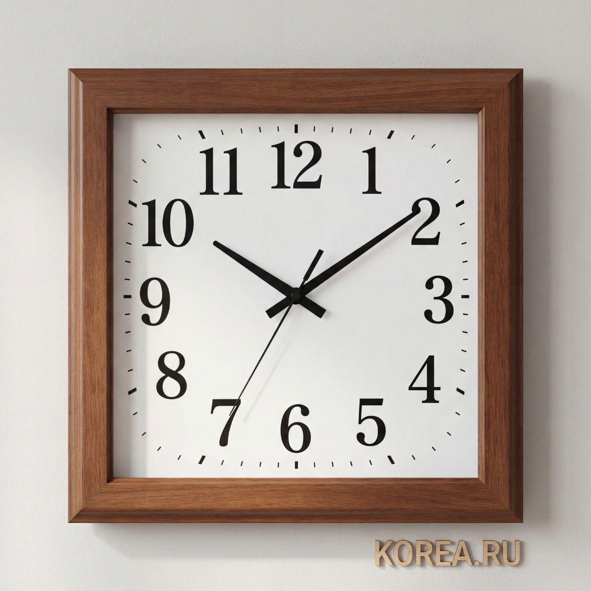 Размеры: 320×320×50 мм | Материал: MDF | Форма: Квадратная | Механизм: Плавного хода | Циферблат: Арабские цифры | Цвет: Коричневый | Класс: Настенные часы для дома