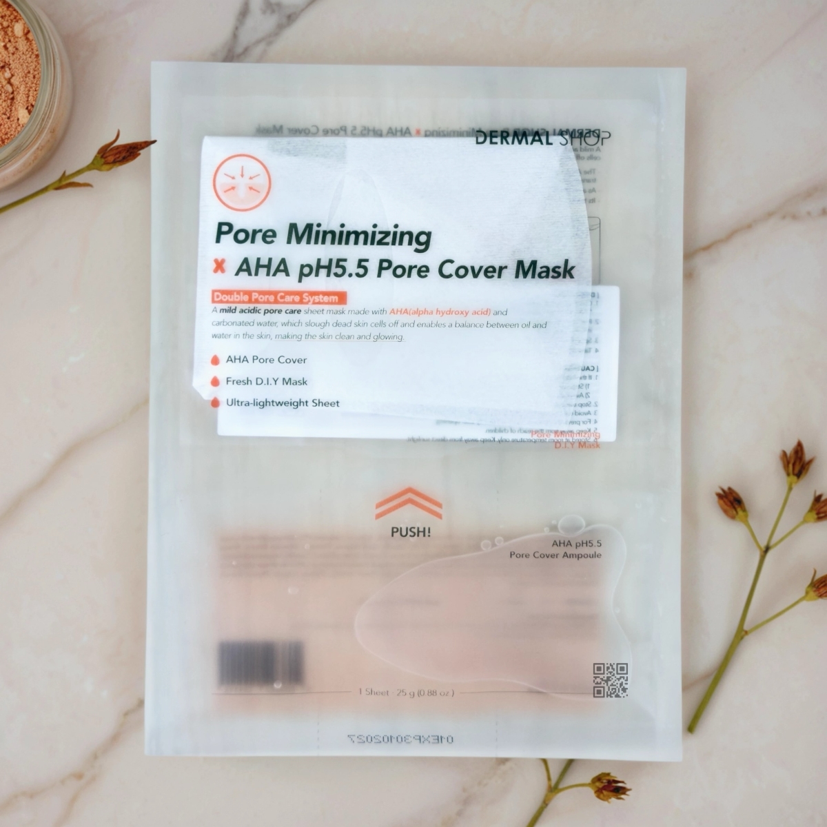 Маска сужающая поры с AHA-кислотами Dermal Shop (pH5.5) — деликатный химический пилинг для чистой и сияющей кожи (1шт.)