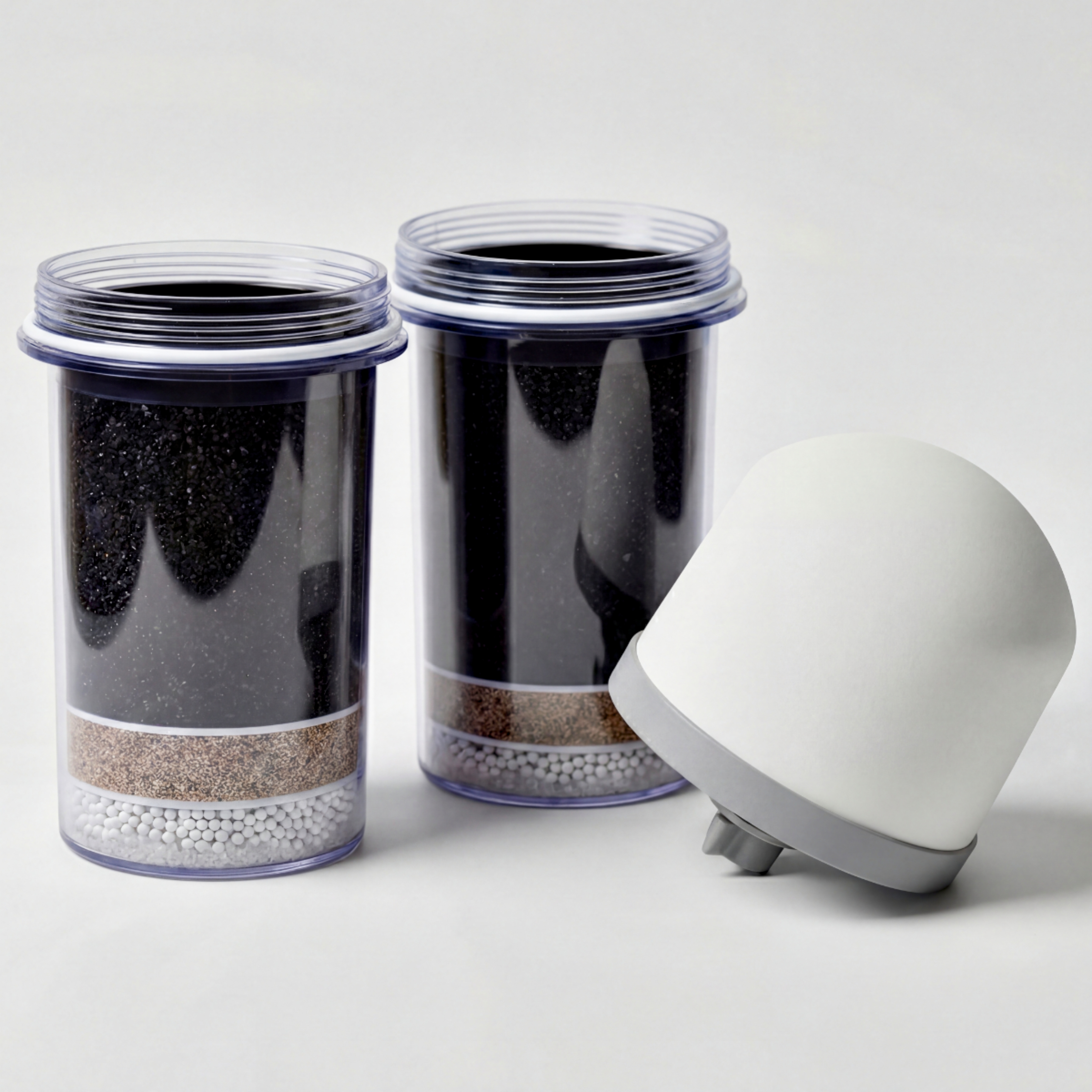 Каждый картридж рассчитан на 6–8 месяцев работы и представляет собой многослойную систему, где в одном корпусе сочетаются несколько типов фильтрующих материалов. Основной состав включает активированный серебром уголь, био-керамические шарики, кварцевый песок с омеднением и цеолиты. Такое сочетание обеспечивает комплексное удаление химических и органических загрязнений, корректировку вкуса и запаха воды и сохранение полезных минералов.