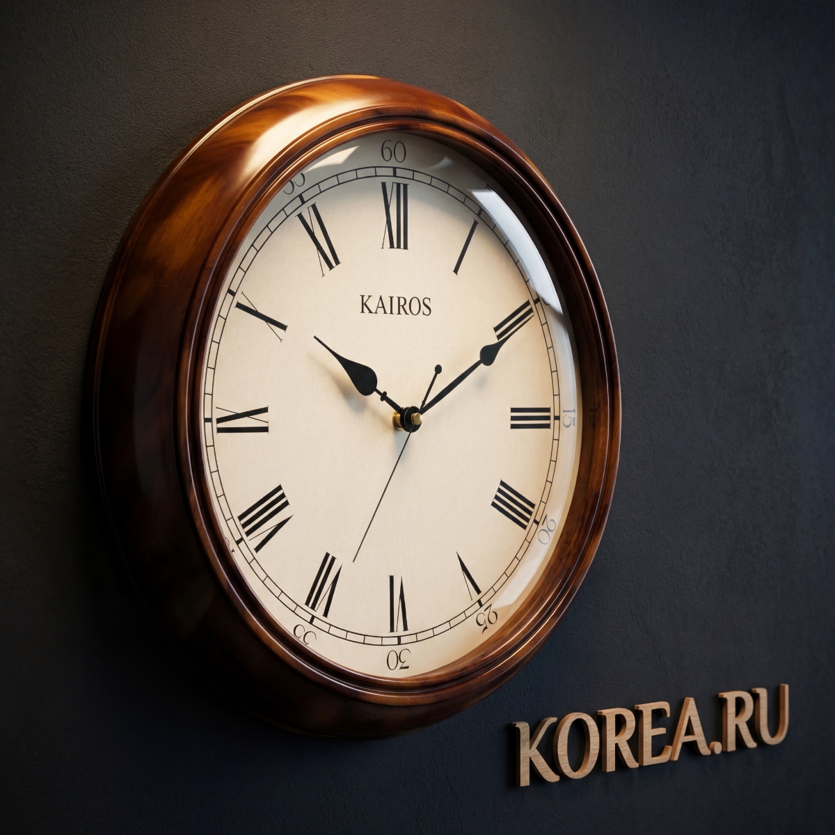 Настенные часы Kairos KS 532-3 классические в коричневом цвете 390х390мм с римским циферблатом