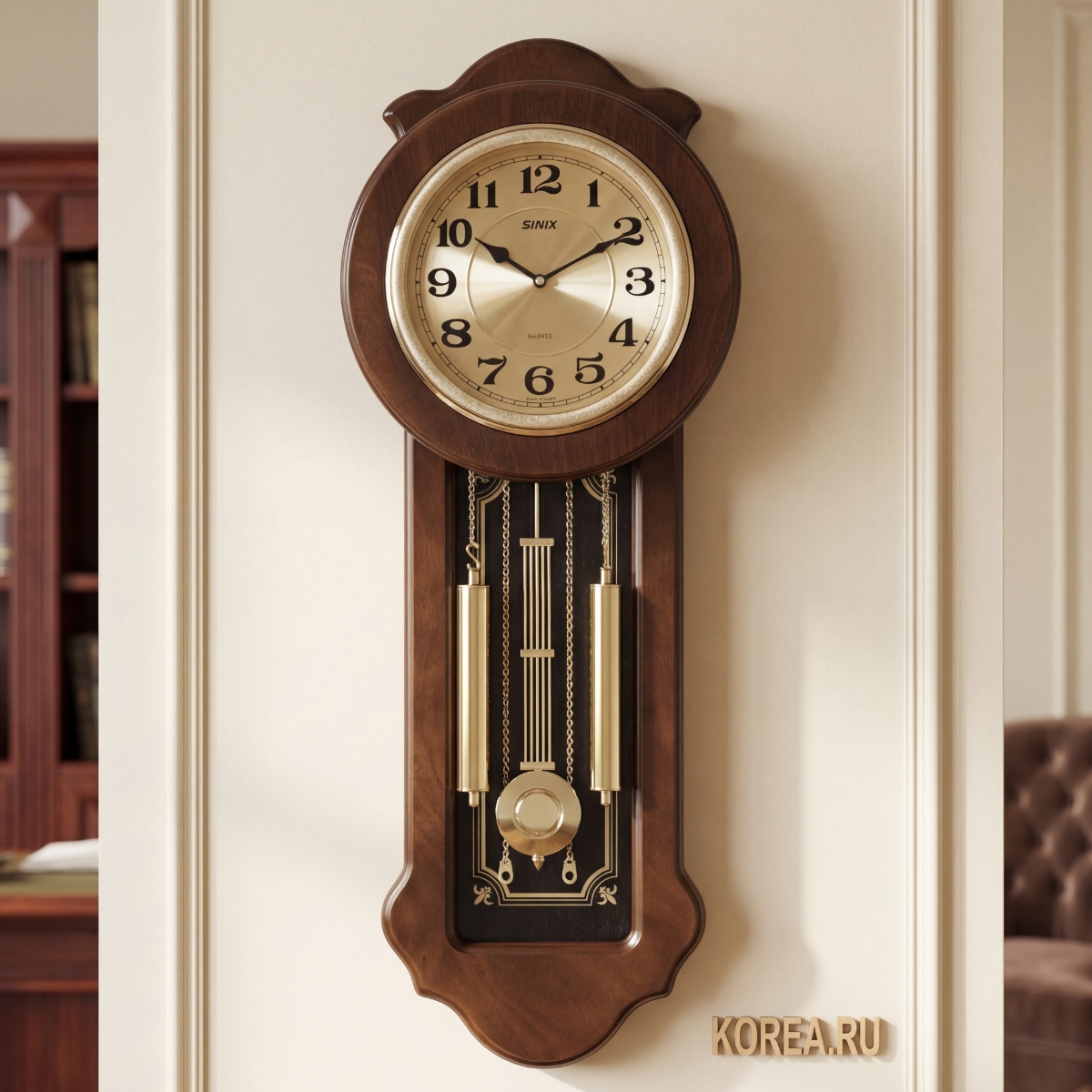 Настенные часы SINIX 03 — это воплощение традиционной элегантности и современных корейских технологий. Эта модель создана для тех, кто ценит эстетику классических интерьерных часов, но предпочитает тишину и удобство кварцевых механизмов. Величественный корпус в цвете "благородный орех" станет центральным акцентом в вашей гостиной, кабинете или просторном холле.